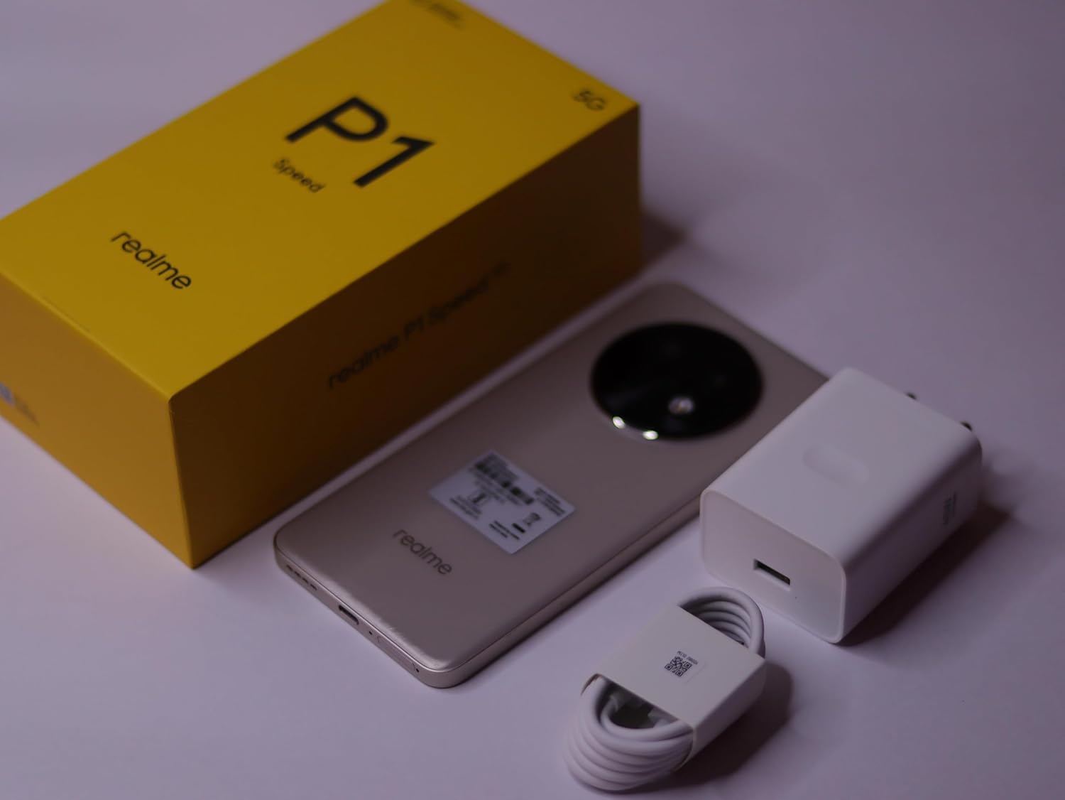 Realme P1 Speed 5G x 1N The centerpiece of the package, the P1 Speed 5G combines performance and style with its sleek design, powerful hardware, and 5G connectivity.USB Type-C Cable x 1N A high-quality Type-C cable for fast charging and data transfer, ensuring convenience and speed at all times.Power Adapter x 1N The included charger ensures that you can take advantage of fast charging technology, minimizing downtime and keeping you connected throughout the day.Protective Case x 1N A transparent, durable case to protect your device without compromising on aesthetics, ensuring it remains scratch-free and stylish.Screen Protector Film x 1N (Pre-applied) A pre-applied screen protector keeps your display protected from scratches and smudges, giving you peace of mind from the start.SIM Card Needle x 1N A SIM ejector tool included to assist in setting up your device effortlessly by inserting or removing SIM cards with ease.Quick Guide x 1N A handy quick-start manual to walk you through the initial setup and features of the P1 Speed 5G, ensuring you make the most of your new phone right out of the box.Safety Guide x 1N A detailed safety guide that provides essential instructions on using your phone safely and efficiently for an optimal experience.